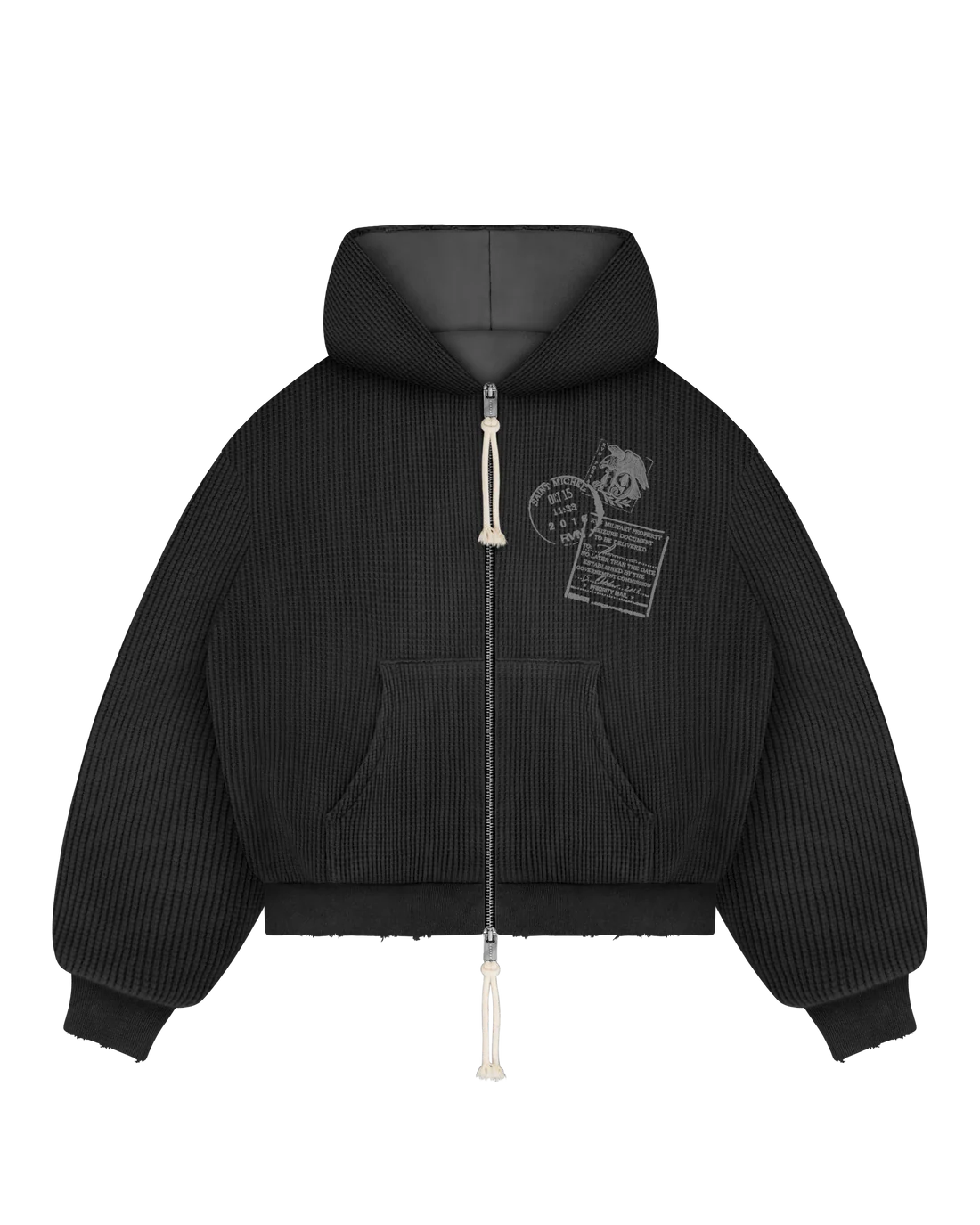 Felpa con cappuccio e zip in maglia termica nera Reaven
