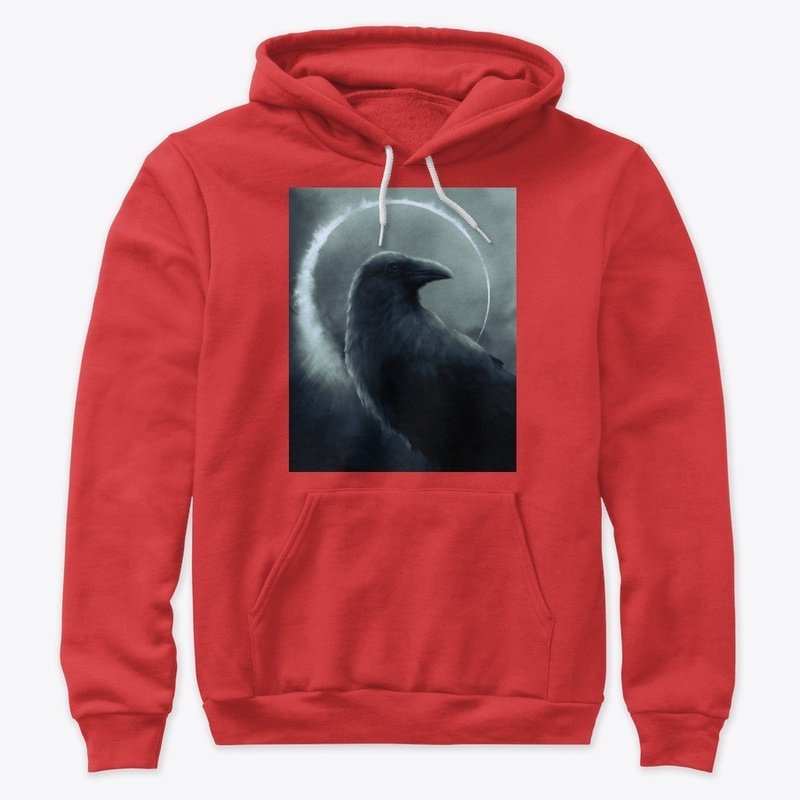 Design: classica felpa con cappuccio in stile pullover con cappuccio con coulisse, tasca frontale a marsupio e una grande grafica centrale raffigurante un Reaven con un etereo alone lunare.