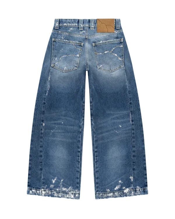 Immergiti in un paesaggio invernale con i jeans Reaven Silver Snowfall Rift Denim. Questi jeans presentano una splendida base blu medio-lavata, impreziosita da un’intricata finitura argentata che richiama l’aspetto della brina fresca. L’esclusiva lavorazione “Rift” crea una silhouette strutturata e ampia che cattura l’attenzione, pur mantenendo un tocco streetwear rilassato. Realizzati con maestria per garantire resistenza e stile, questi jeans fondono un design all’avanguardia con il comfort quotidiano, rendendoli il capo perfetto per qualsiasi guardaroba moderno e di alta moda.