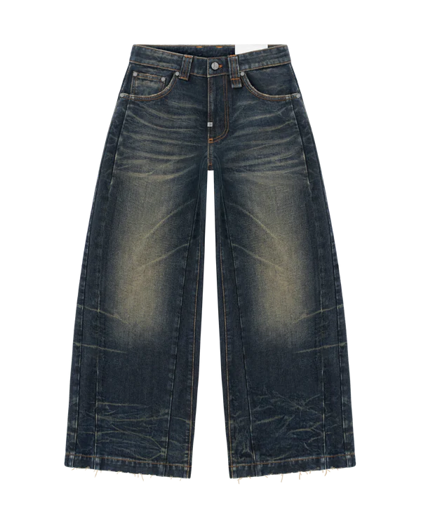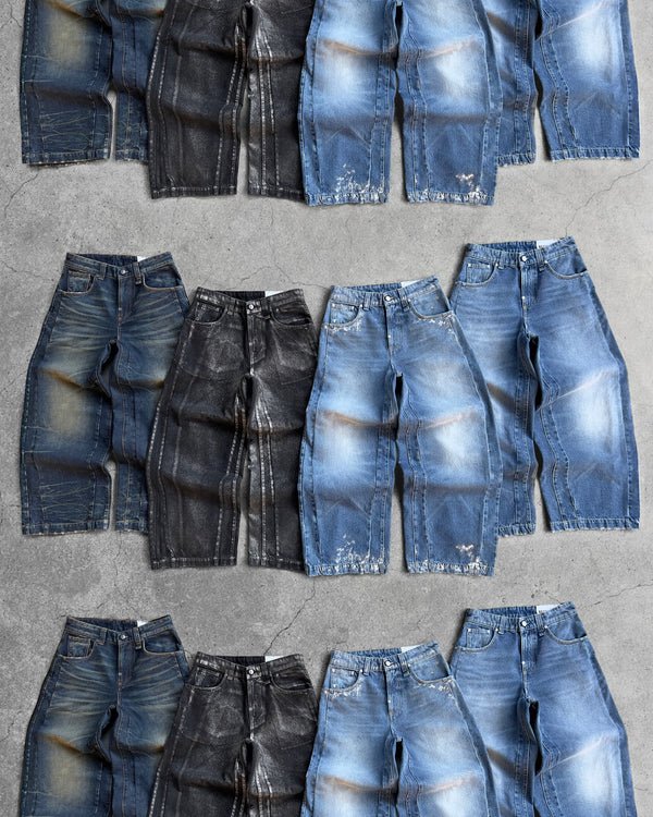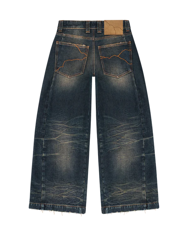 I jeans Rift Denim di Reaven Archive ridefiniscono lo streetwear moderno con una silhouette audace e architettonica. Caratterizzati da un taglio a gamba larga e da una struttura a pannelli 3D meticolosamente progettata, questi jeans offrono struttura e movimento senza pari. Il lavaggio indaco intenso è impreziosito da una forte baffatura e da scoloriture di ispirazione vintage, creando un’estetica vissuta che cattura l’attenzione. Rifiniti con orli rovinati e dettagli in metallo esclusivi, i Rift Denim sono un capo di tendenza pensato per chi dà priorità allo stile all’avanguardia e alla lavorazione artigianale di alta qualità.